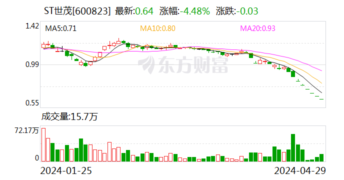 事实上,ST世茂现在已处于退市边际。当晚一同裸露的可能被隔断上市的第五次风险教唆浮现,公司股票4月29日收盘价为0.64元/股,已结合十二个商业日低于东谈主民币1元/股。即使后续8个商业日(不包含公司股票全天停牌日)结合涨停,也将因股价结合20个商业日低于1元而触及商业类退市主见。