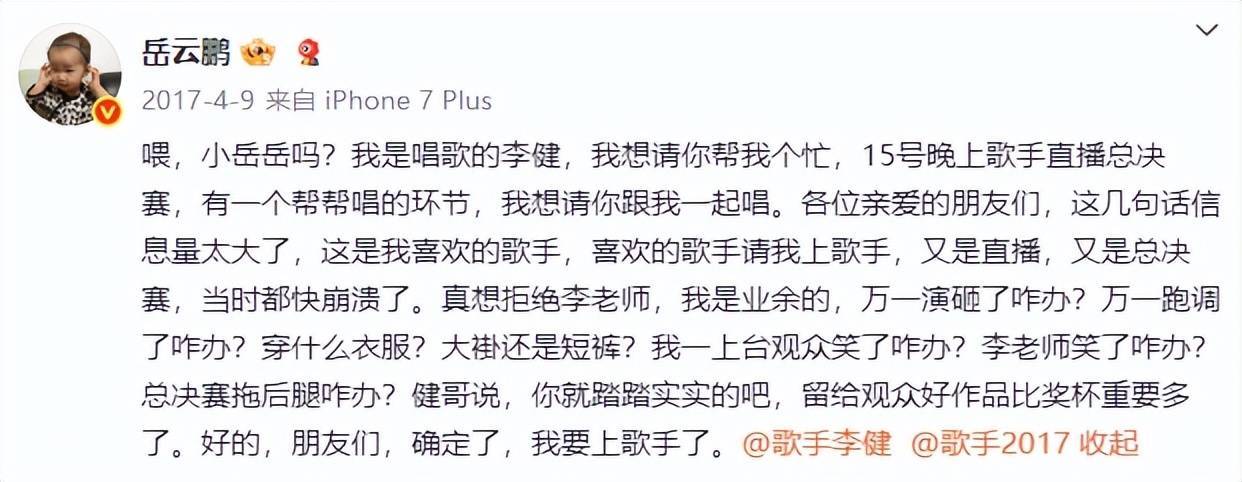 2020年,岳云鹏曾在酬酢平台上催李健出新专辑。对此,李健幽默回答说念:“岳岳,我也张惶了,一不堤防写多了,有点儿收不住了。”